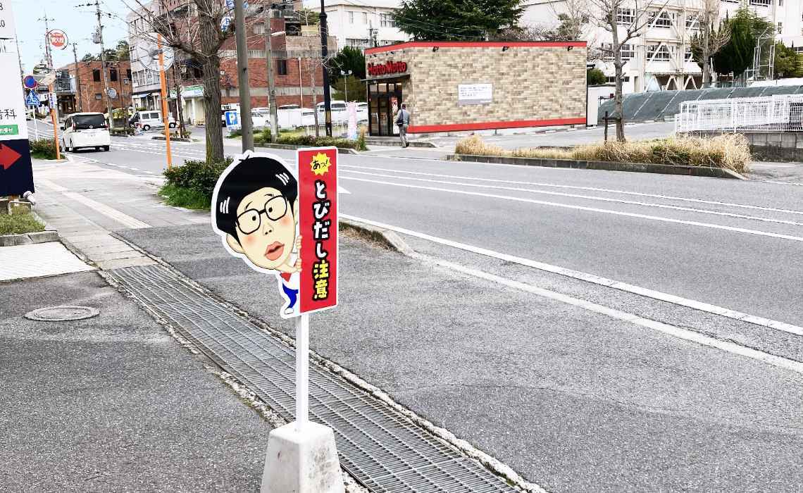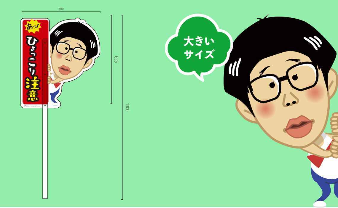 飛び出しひょっこりはんのサイズ大です。事故が良く発生しそうな学校や施設の近辺への設置(※)が可能です。個人でご購入のお客様は、ご自宅やお勤め先の会社などの敷地内での設置をお願いいたします。